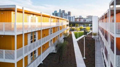 Complejo de viviendas para personas sin hogar construido con contenedores en Los Ángeles